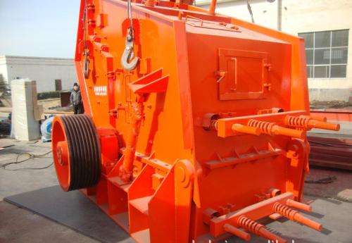 在處理物料含水量過(guò)大時(shí),反擊式破碎機(jī)的進(jìn)料溜槽和反擊板可配備加熱裝置,防止物料的粘結(jié)。反擊式破碎機(jī)不須配備底部篩板可有效防止堵塞現(xiàn)象。