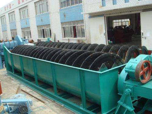 螺旋分級(jí)機(jī)是選礦的設(shè)備之一,螺旋分級(jí)機(jī)借助固體顆粒的比重不同,因而在液體中沉淀的速度不同的原理,進(jìn)行機(jī)械分級(jí)的一種設(shè)備。能把磨機(jī)內(nèi)磨出的料粉級(jí)于過濾,然后把粗料利用螺旋片旋片旋入磨機(jī)進(jìn)料口,把過濾出的細(xì)料從溢流管子排出。螺旋分級(jí)機(jī)簡(jiǎn)稱分級(jí)機(jī)。 分級(jí)機(jī)主要有高堰式單螺旋和雙螺旋、沉沒式單螺旋和雙螺旋四種分級(jí)機(jī)。分級(jí)機(jī)主要由傳動(dòng)裝置、螺旋體、槽體、升降機(jī)構(gòu)、下部支座(軸瓦)和排礦閥組成。螺旋分級(jí)機(jī)廣泛適用于選礦廠中與球磨機(jī)配成閉路循環(huán)程分程分流礦沙,或用在重力選礦廠中來分級(jí)礦砂和細(xì)泥,及金屬選礦流程中對(duì)礦漿進(jìn)行粒度分級(jí),及洗礦作業(yè)中的脫泥、脫水等作業(yè)。